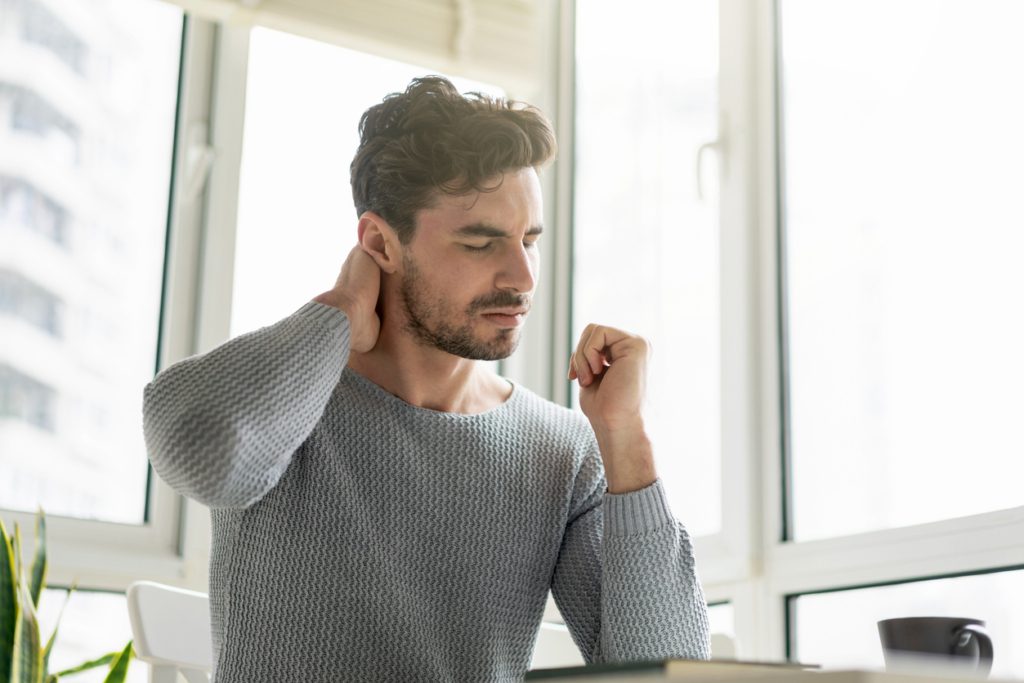 في العادة عندما ننشغل باستخدام الشاشات وضغط العمل، يمكن أن ينشأ ضغط على العضلات؛ يزحف ألم الكتفين إلى الأذنين، وينضغط الفك؛ مما يؤدي إلى انحباس أنفاسنا.